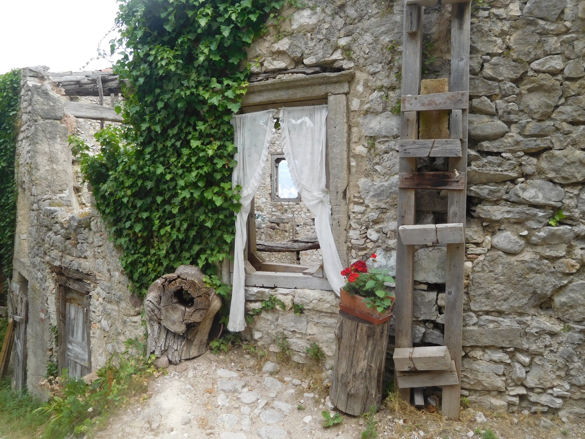 Dit was nog niet zo lang geleden verlaten. Maar ook zoals in Carmine aan het Lago Maggiore, Bussana Vecchia in Liguria en Bagnoregio is er deels weer bewoond door kunstenaars en rust zoekers net als in die andere plaatsen. Want je moet circa 1 km lopen vanaf de parkeerplaats en dat geldt dan ook voor de bewoners.