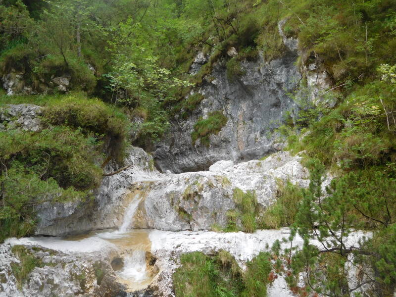 Niet ver van Vittorio Veneto ligt een klein maar zeer mooi natuurgebied met grotten, een kloof en diverse watervallen. Rij naar Fregona waar je via Google Maps op de juiste plaats komt. Doe je dat niet dan laat je je misleiden doordat er een parkeerplaats naar de grotten in het dorp aangegeven is. Als je zijn hebt in een licht pittige wandeling dan parkeer je daar en loopt 1/2 uur via Ponte de Fer erheen. Maar eenvoudiger is om Maps te volgen en vanaf daar de korte wandeling, circa 1 km, te gaan doen door een mooi stuk natuur.